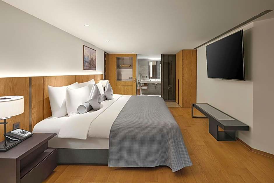 This room includes air conditioning, a flat-screen TV. An electric kettle and refrigerator are also provided in the room.